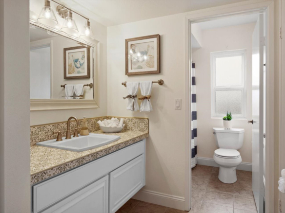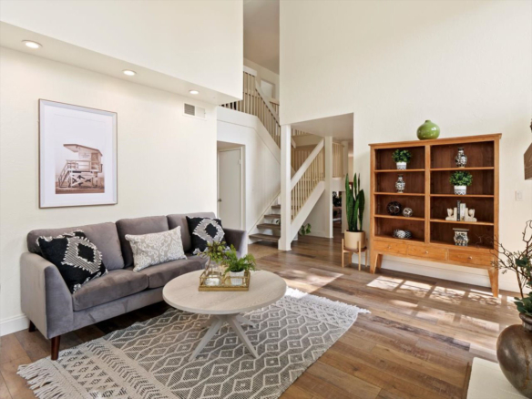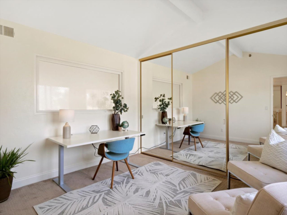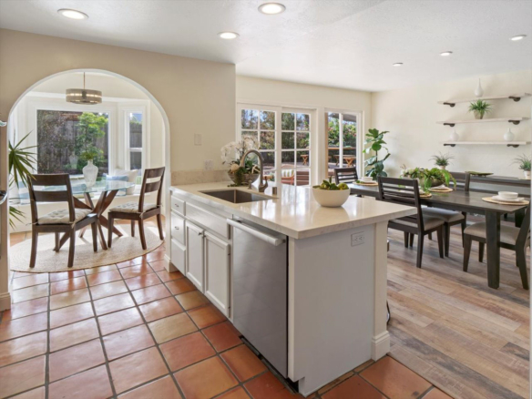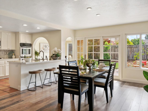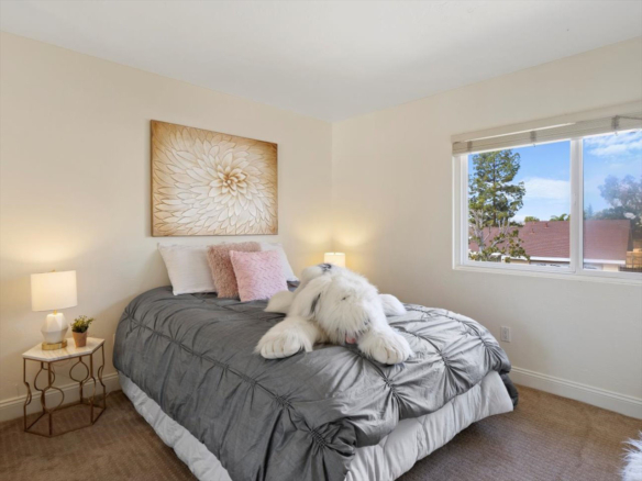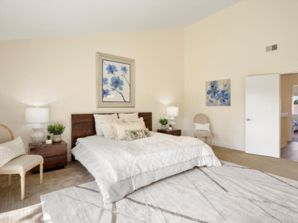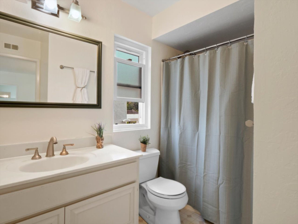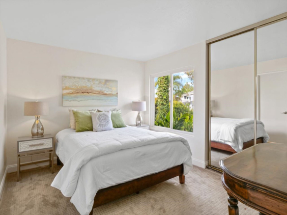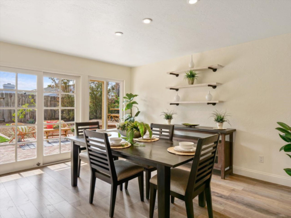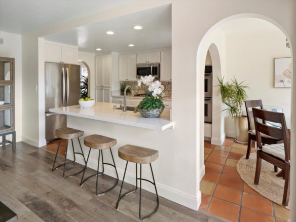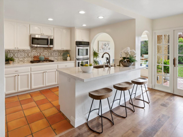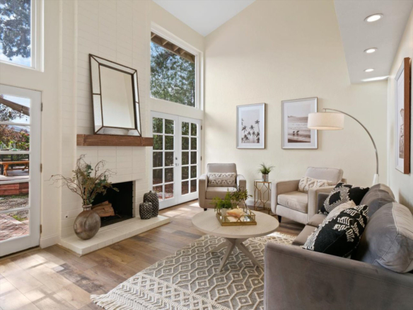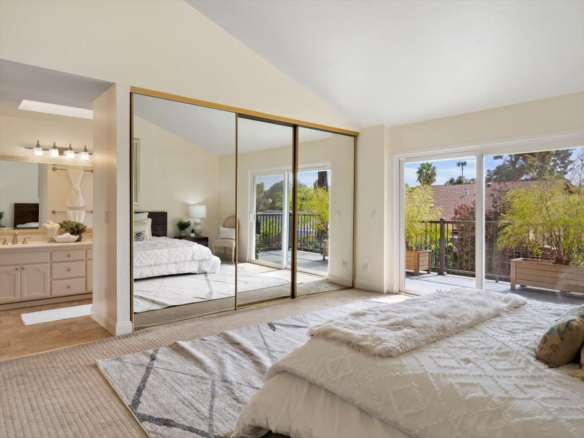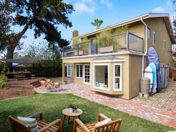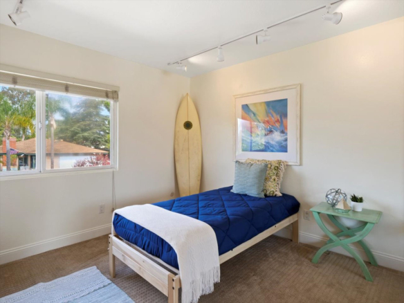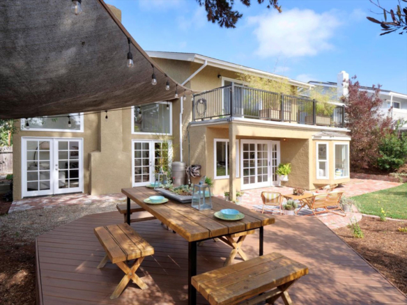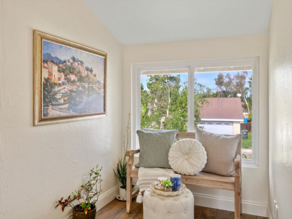 Welcome Home! Do not delay coming to see this fabulous Village Park home in Encinitas. It will not stay on the market long. This 5 BR/3BA home is freshly painted and ideal to today’s living. Small HOA/ NO Mello Roos fees! Full BR/BA downstairs. Living room features vaulted ceilings, floor to ceiling fireplace framed by matching French doors that open to the lovely yard with center piece wood deck and raised garden bed on side yard. Kitchen is adjacent to large dining area, not to mention the adorable built-in breakfast nook, a perfect day starter with a cup of Joe. Large master bedroom enjoys a spacious balcony overlooking the backyard, and a custom walk-in tile shower. Also, upstairs are the three additional secondary bedrooms and hall bath including one space with large window that can be used as a student desk, reading nook or yoga space.