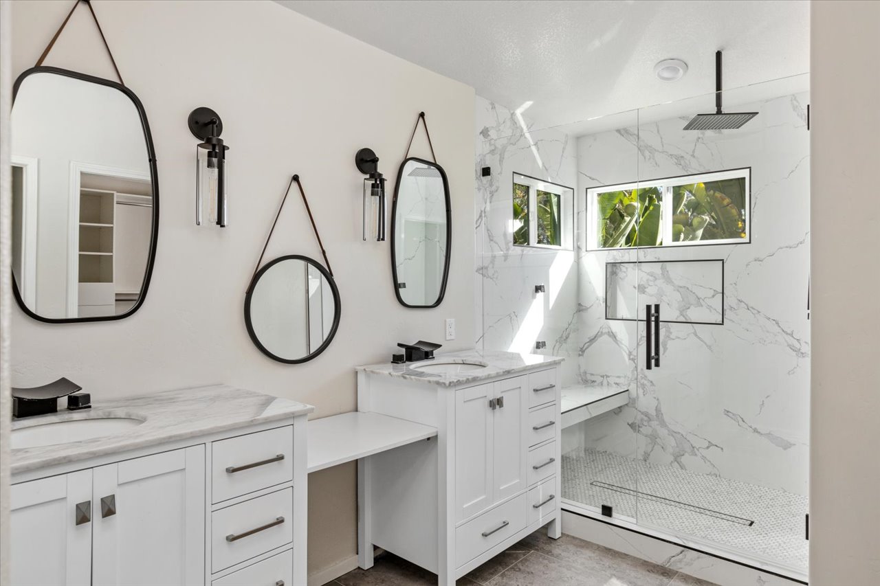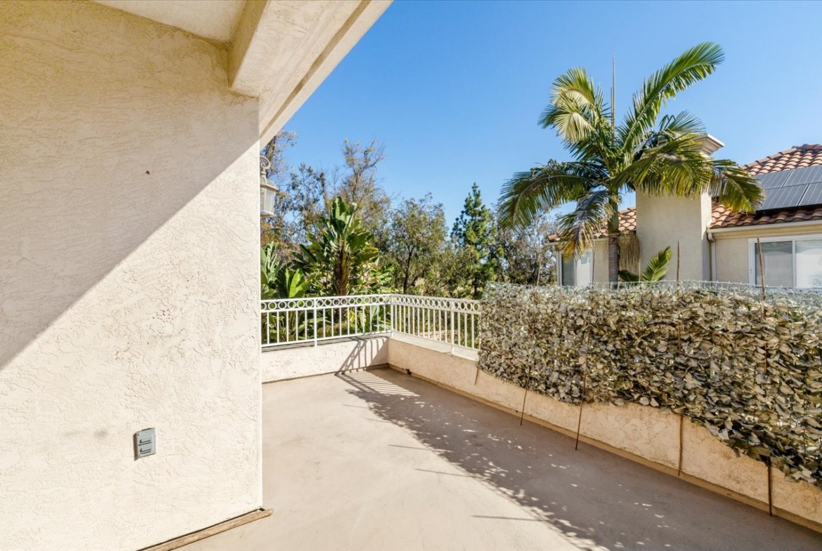 This inviting residence features a bright and open floor plan with several spacious living areas, abundant natural light, and a seamless flow perfect for everyday living and entertaining. The kitchen offers ample cabinetry and counter space, opening to a comfortable family room. A convenient downstairs bedroom and full bathroom provide ideal flexibility for guests or multi-generational living. Upstairs, the expansive primary suite is complemented by two generously sized secondary bedrooms and a large versatile bonus room with direct access to a private balcony – ideal for work-from-home needs or additional living space Step outside to your own private retreat. The backyard is designed for both relaxation and entertaining, featuring a sparkling pool, hot tub, and multiple areas to gather and unwind. A fully gated setting and charming courtyard entry enhance both privacy and curb appeal. Laundry room and large 3 car attached garage. Conveniently located near parks, shopping, dining, and easy freeway access, this home offers the best of coastal North County living.